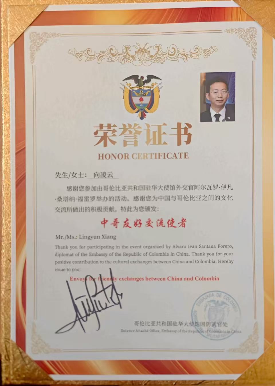 哥倫比亞駐華大使館授予向凌云“中哥友好交流使者”