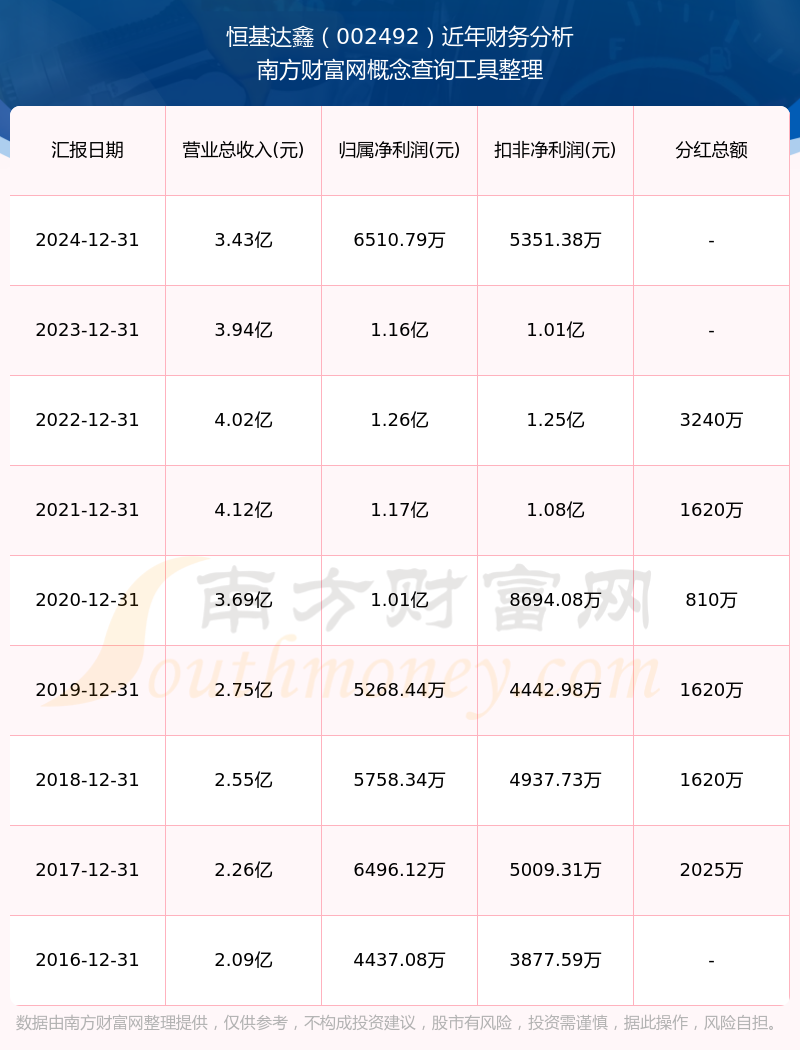恒基達(dá)鑫歷年分紅派息情況如下表所示: