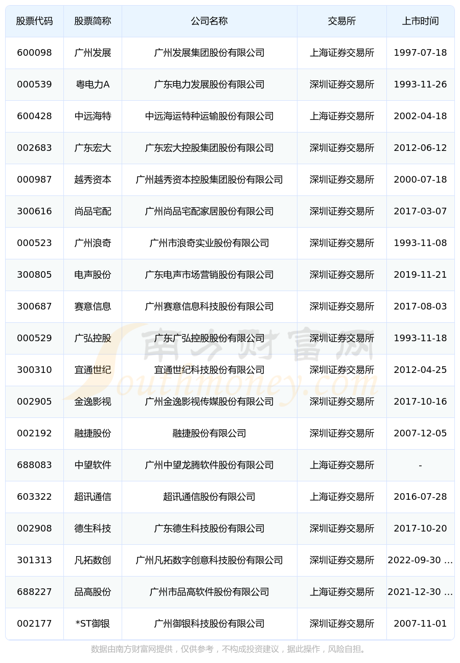 截至12月7日,廣州天河區(qū)共有19家上市公司,南方財(cái)富網(wǎng)趨勢(shì)選股系統(tǒng)為您整理了廣州天河區(qū)在A股上市的公司。