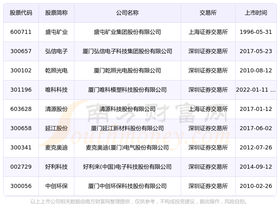 截至12月7日,廈門翔安區(qū)共有9家上市公司,南方財(cái)富網(wǎng)趨勢(shì)選股系統(tǒng)為您整理了廈門翔安區(qū)在A股上市的公司。