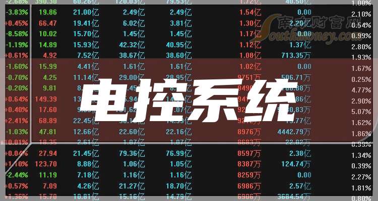 據(jù)南方財富網(wǎng)概念查詢工具數(shù)據(jù)顯示,電控系統(tǒng)龍頭股上市公司有: