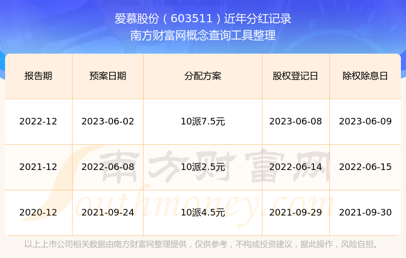 愛慕股份最新一次公布的分紅方案:10派7.5元。