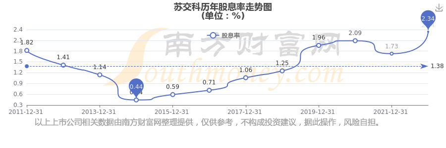 蘇交科最新一次公布的分紅方案:10派1.4元。