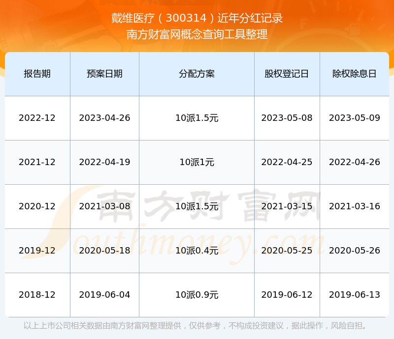 戴維醫(yī)療最新一次公布的分紅方案:10派1.5元。