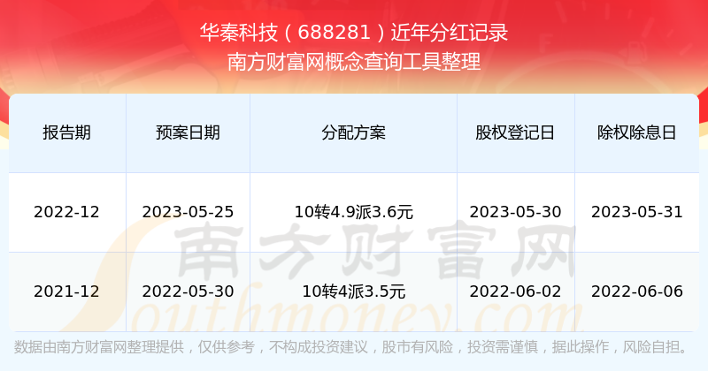 華秦科技?xì)v年分紅派息情況如下表所示: