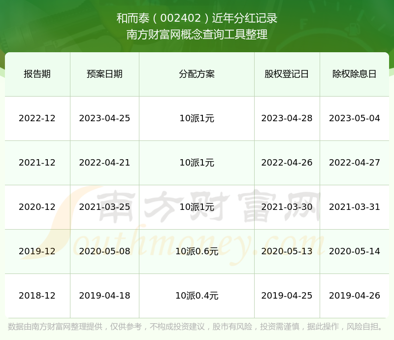 和而泰最新一次公布的分紅方案為10派1元。本次權(quán)益分派股權(quán)登記日為2023年4月28日,除權(quán)除息日為2023年5月4日,派息日為2023年5月4日。