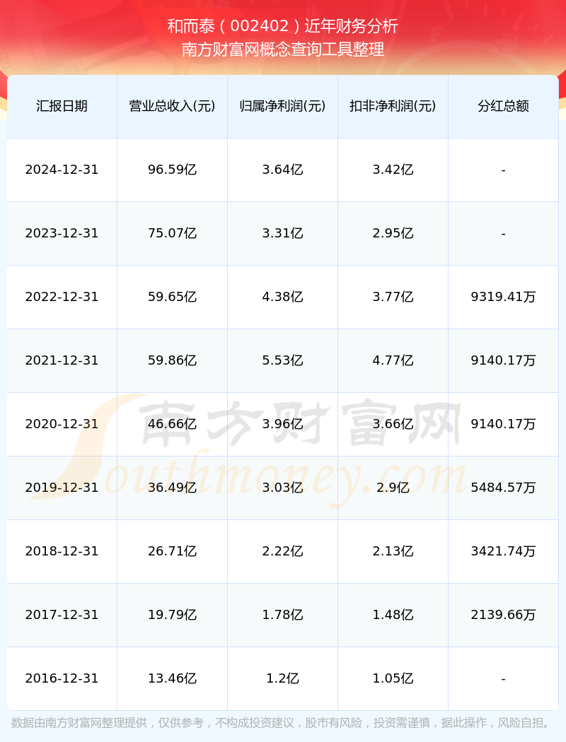 和而泰2024年總營收96.59億,同比增長28.66%;凈利潤3.64億,同比增長9.91%;銷售毛利率18.27%。