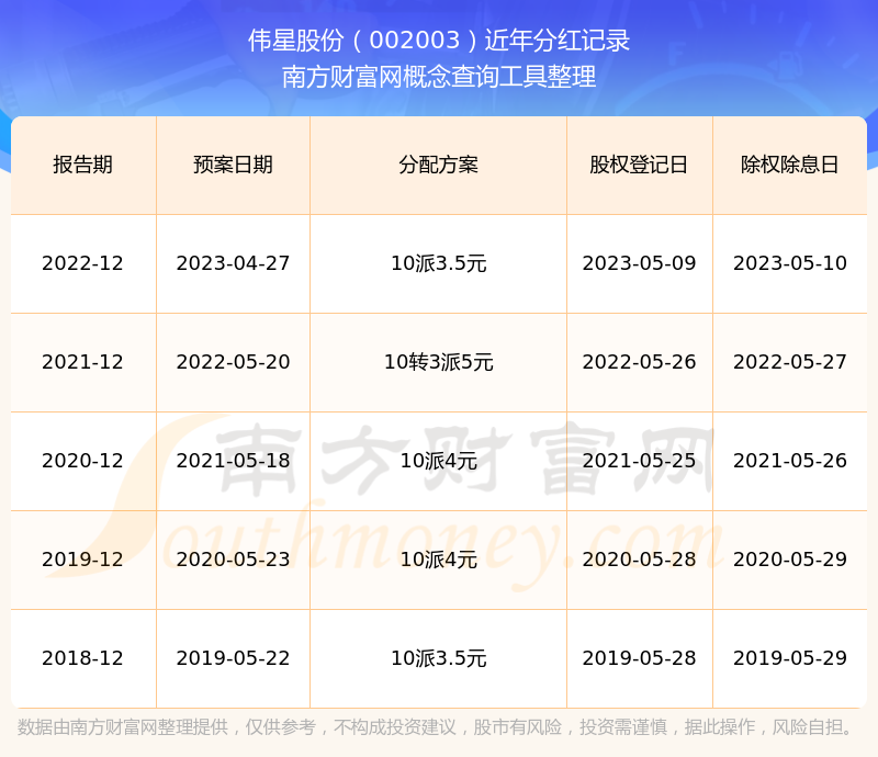近年偉星股份分紅派息情況如下表所示: