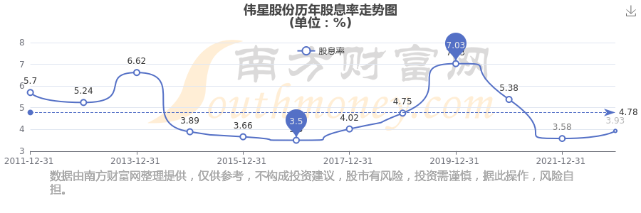 偉星股份歷年股息率走勢如下圖: