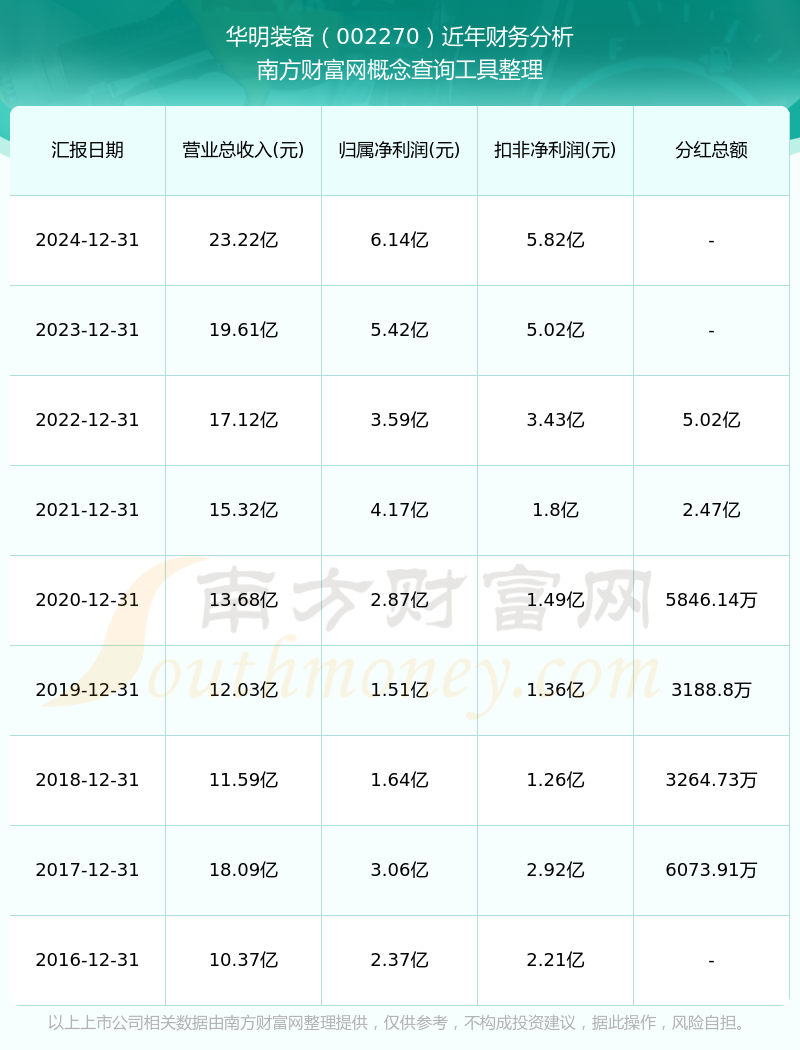 2024年華明裝備總營(yíng)收23.22億,同比增長(zhǎng)18.41%;凈利潤(rùn)6.14億,同比增長(zhǎng)13.25%;銷售毛利率48.8%。