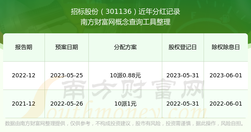 招標股份最新一次公布的分紅方案:10派0.88元。