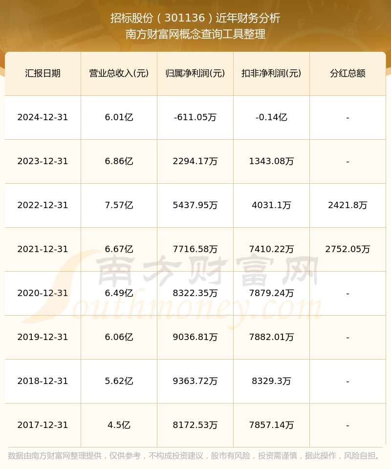 2024年招標股份總營收6.01億,同比增長-12.42%;凈利潤-611.05萬,同比增長-126.64%;銷售毛利率38.95%。