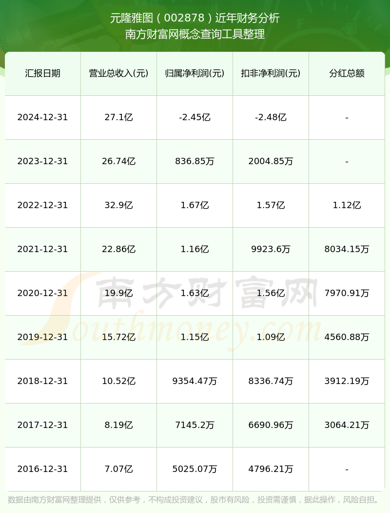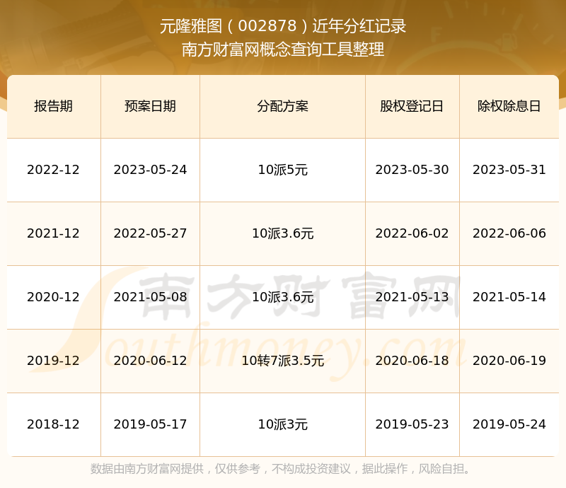 元隆雅圖歷年分紅派息情況如下表所示: