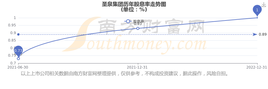 圣泉集團(tuán)歷年股息率走勢如下圖: