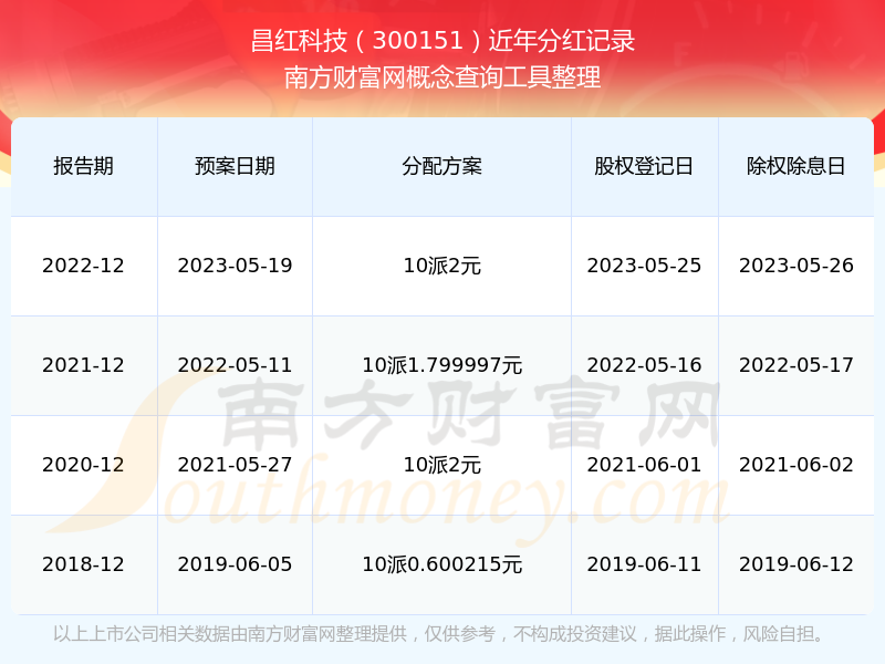 近年昌紅科技分紅派息情況如下表所示: