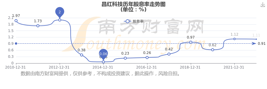 昌紅科技?xì)v年股息率走勢(shì)如下圖: