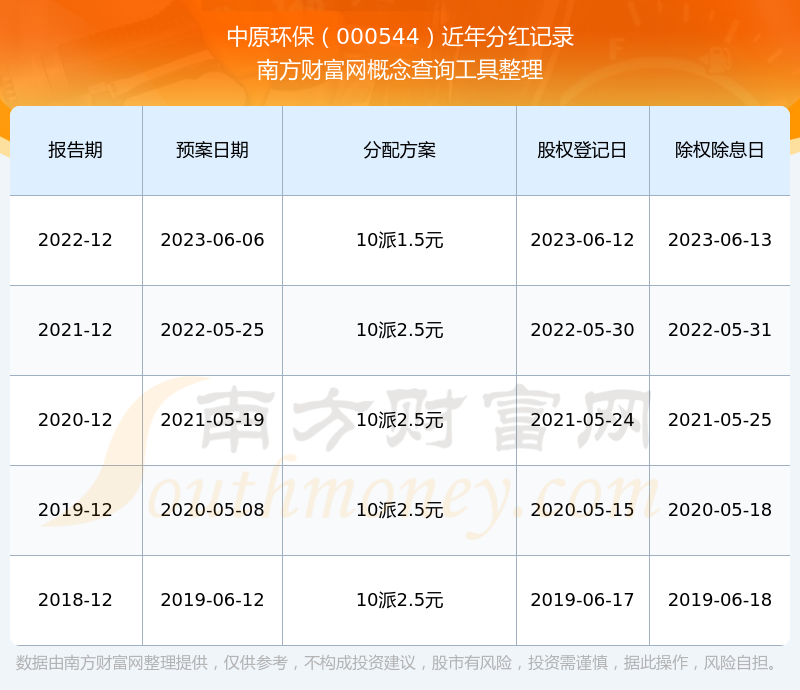 中原環(huán)保最新一次公布的分紅方案:10派1.5元。
