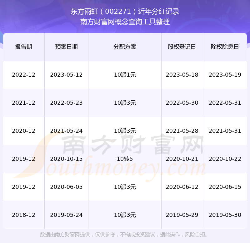 近年東方雨虹分紅派息情況如下表所示: