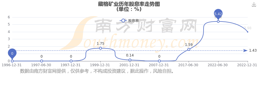 藏格礦業(yè)歷年股息率走勢(shì)如下圖: