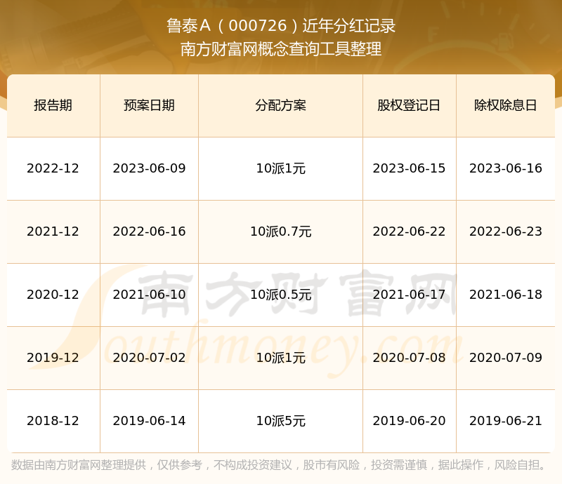 魯泰A歷年分紅派息情況如下表所示: