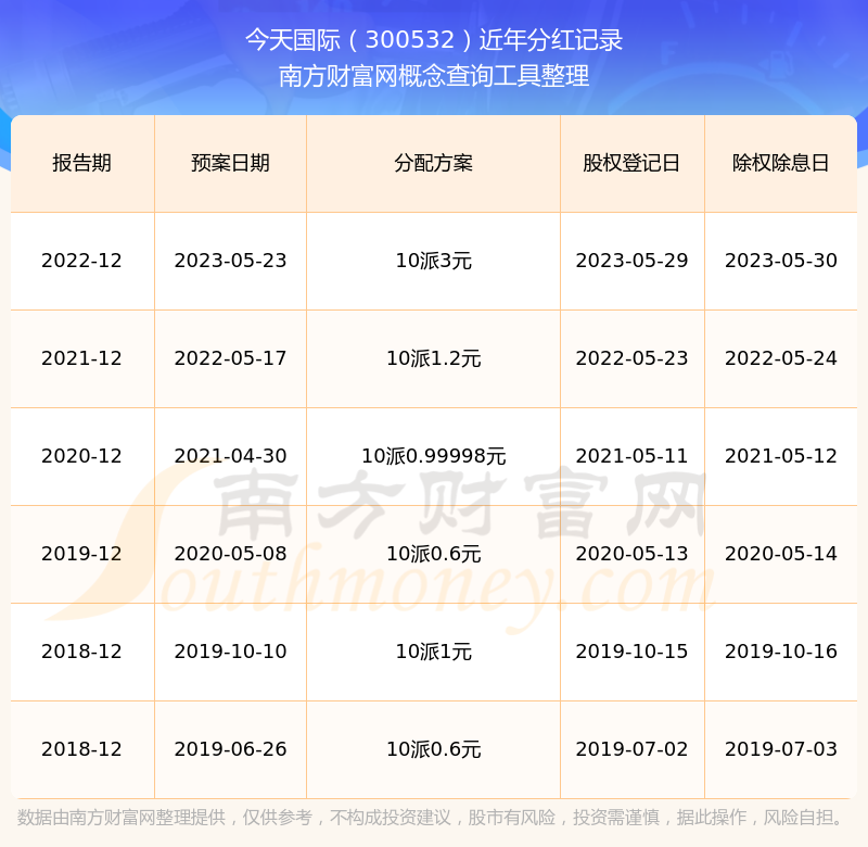 今天國際最新一次公布的分紅方案:10派3元。
