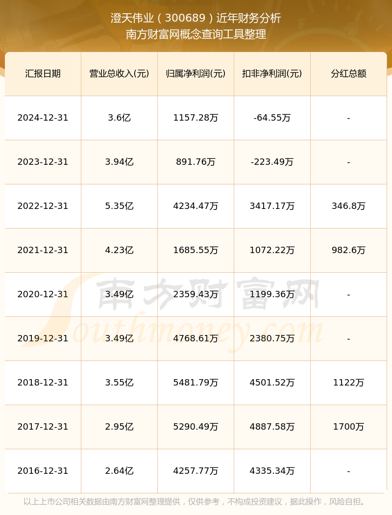 近年澄天偉業(yè)分紅派息情況如下表所示: