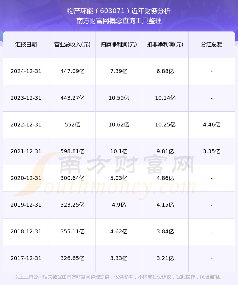 物產(chǎn)環(huán)能公司2024年實現(xiàn)營業(yè)收入447.09億元,同比增長0.86%;凈利潤7.39億元,同比增長-30.25%;毛利率4.2%。