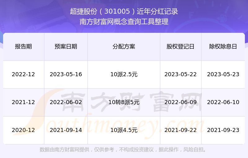 近年超捷股份分紅派息情況如下表所示: