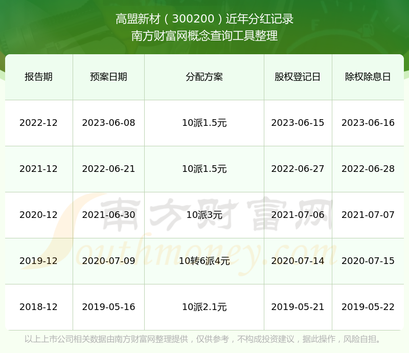 高盟新材最新一次公布的分紅方案:10派1.5元。