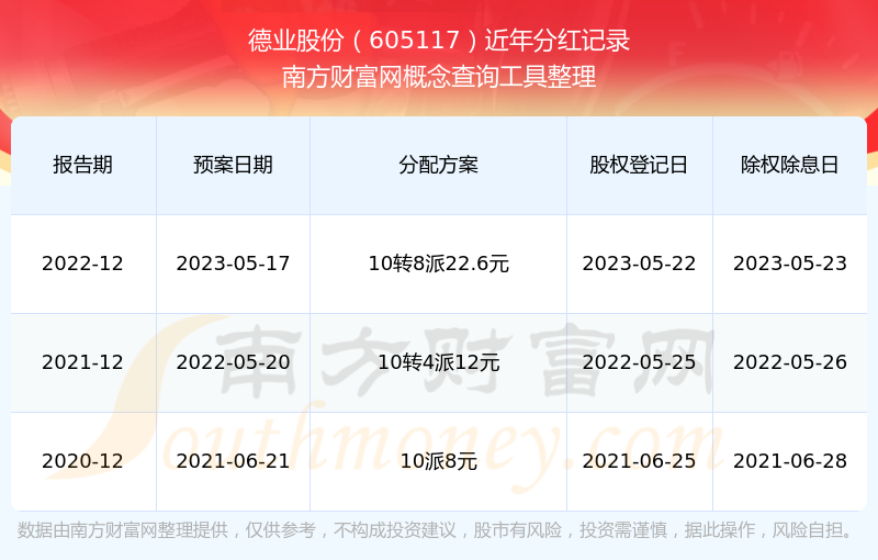 德業(yè)股份最新一次公布的分紅方案為10轉(zhuǎn)8派22.6元。本次權(quán)益分派股權(quán)登記日為2023年5月22日,除權(quán)除息日為2023年5月23日,派息日為2023年5月23日。