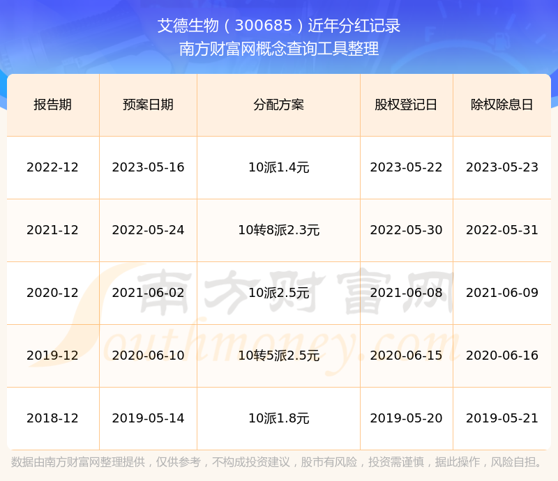 近年艾德生物分紅派息情況如下表所示: