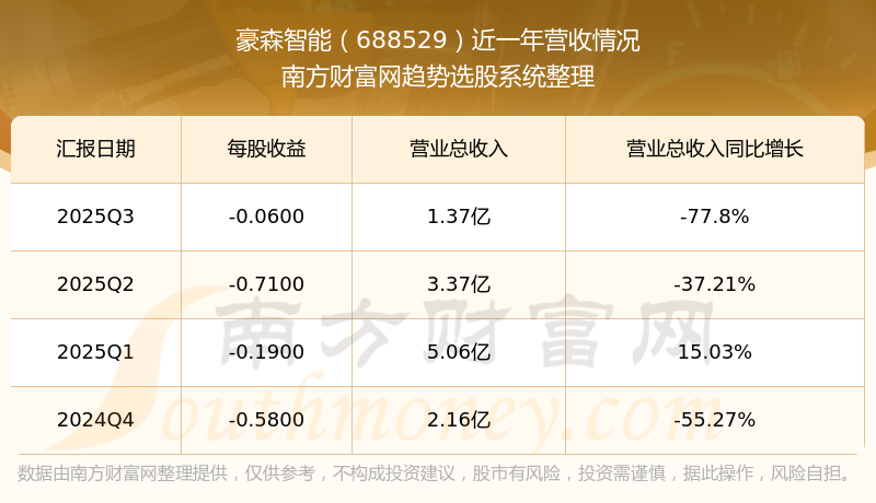 豪森智能股票近一年營收情況如下表: