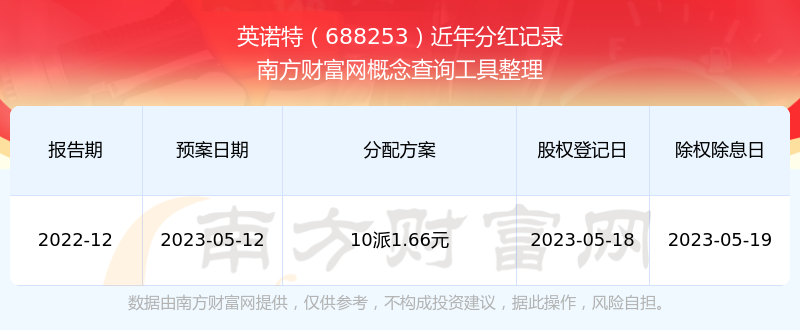 一、英諾特(688253)股票分紅記錄