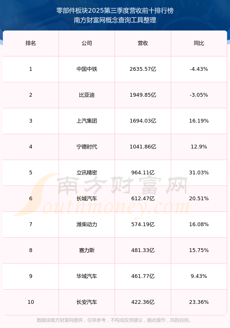 按照南方財富網(wǎng)概念查詢工具統(tǒng)計,該股所屬板塊為零部件板塊,該板塊共有280只股票,西典新能2025第三季度營收在該板塊中排名為第280名,該板塊2025第三季度營收排名前十的股票如下表: