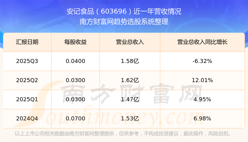 2025年第三季度,安記食品營(yíng)收同比-6.32%,凈利潤(rùn)同比-25.27%。