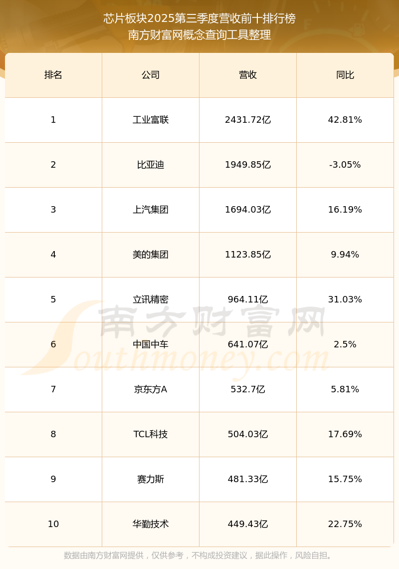 按照南方財(cái)富網(wǎng)概念查詢工具統(tǒng)計(jì),該股所屬板塊為芯片板塊,該板塊共有900只股票,普冉股份2025第三季度營(yíng)收在該板塊中排名為第423名,該板塊2025第三季度營(yíng)收排名前十的股票如下表: