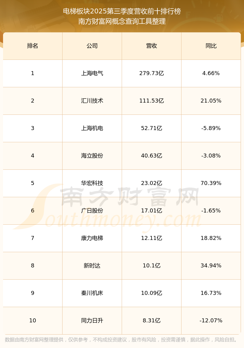 按照南方財(cái)富網(wǎng)概念查詢工具統(tǒng)計(jì),該股所屬板塊為電梯板塊,該板塊共有22只股票,廣日股份2025第三季度營(yíng)收在該板塊中排名為第6名,該板塊2025第三季度營(yíng)收排名前十的股票如下表: