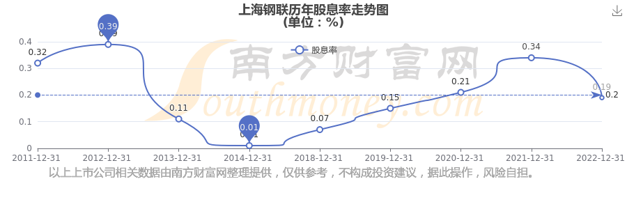 近年上海鋼聯(lián)年度股息率走勢(shì)如下圖: