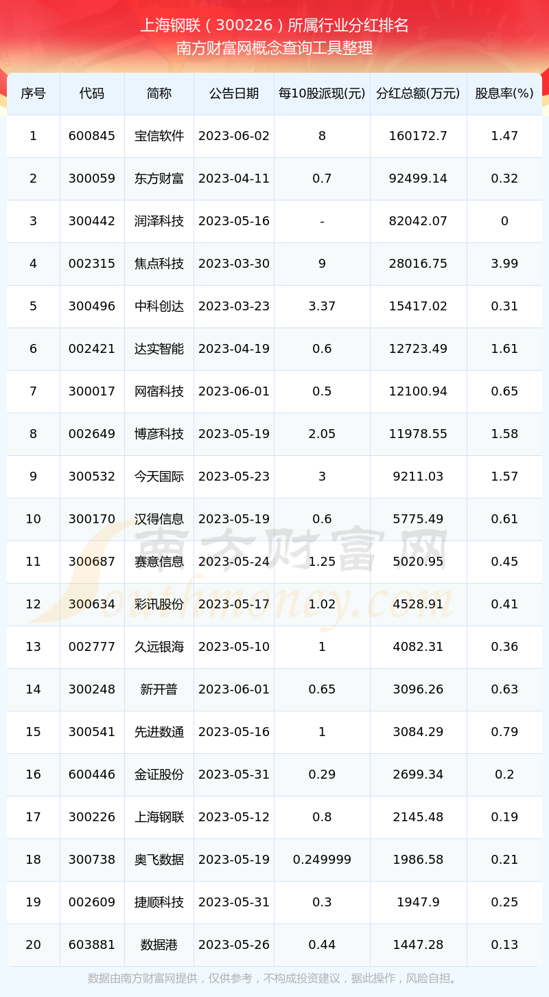二、上海鋼聯(lián)300226行業(yè)分紅排名