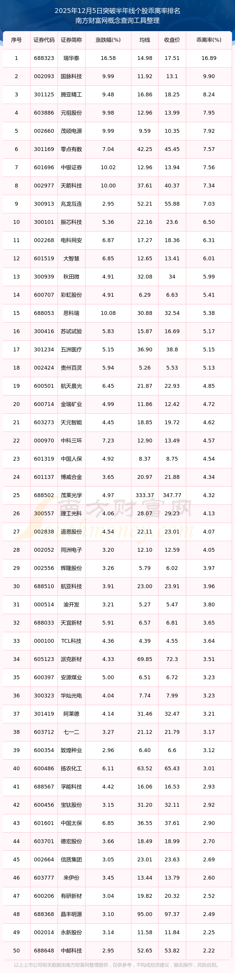 2025年12月5日突破120日線個(gè)股乖離率排名