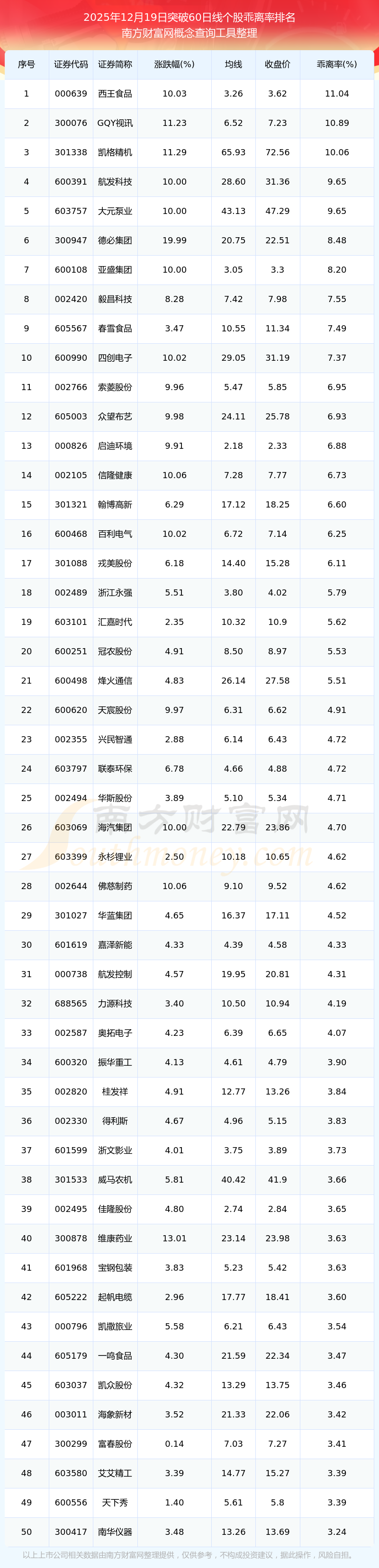 2025年12月19日突破60日線(xiàn)個(gè)股乖離率排名