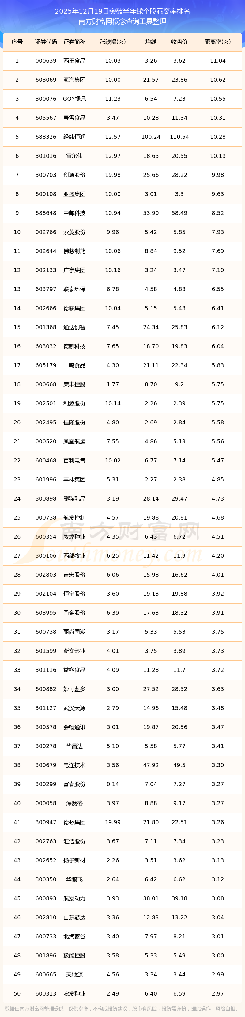 2025年12月19日突破120日線個(gè)股乖離率排名