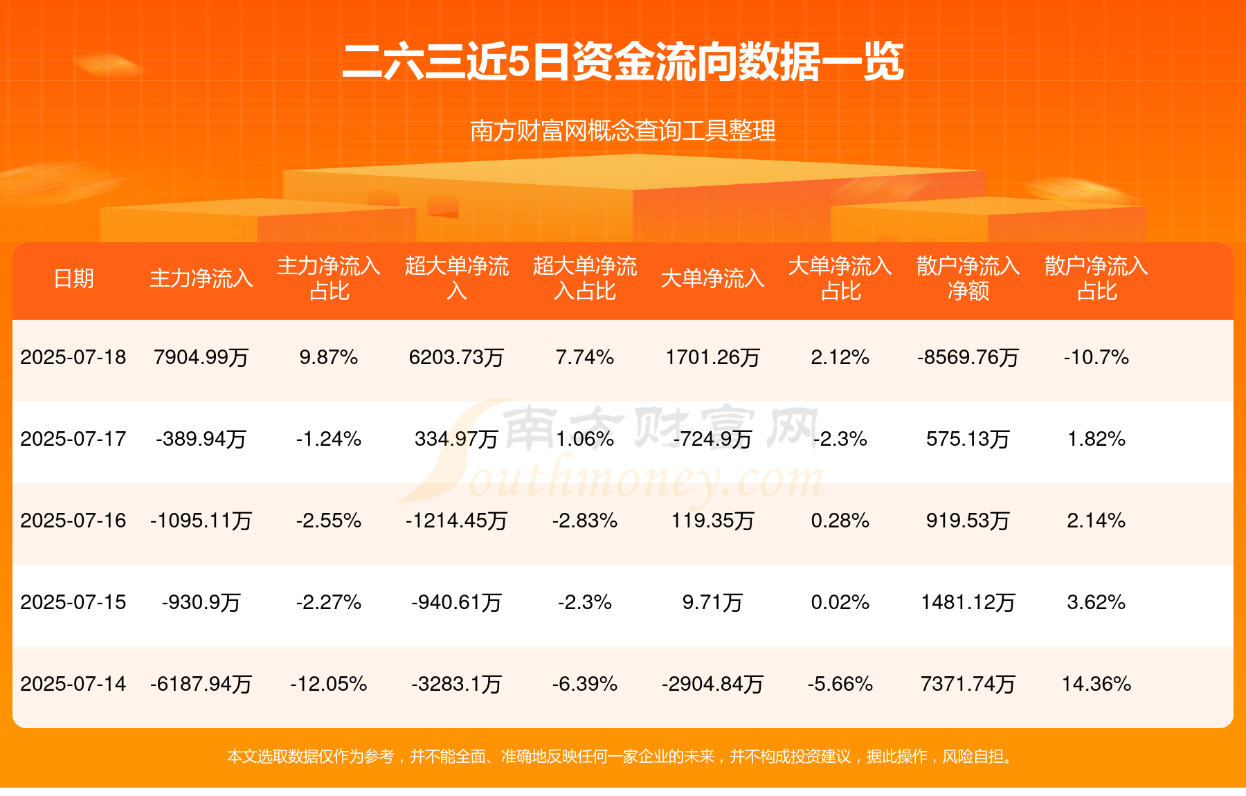 近5日資金流向一覽見下表: