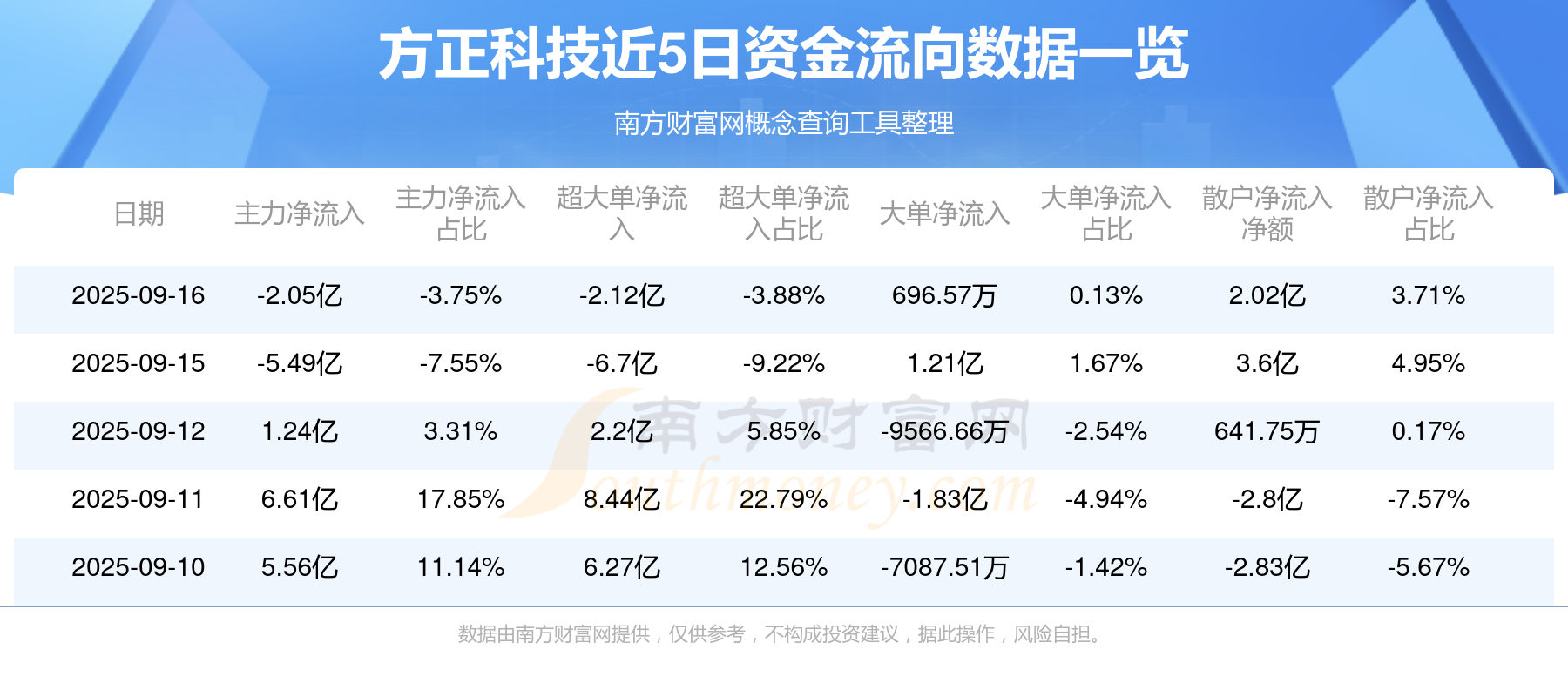 9月16日消息,方正科技9月16日主力資金凈流出2.05億元,超大單資金凈流出2.12億元,大單資金凈流入696.57萬元,散戶資金凈流入2.02億元。