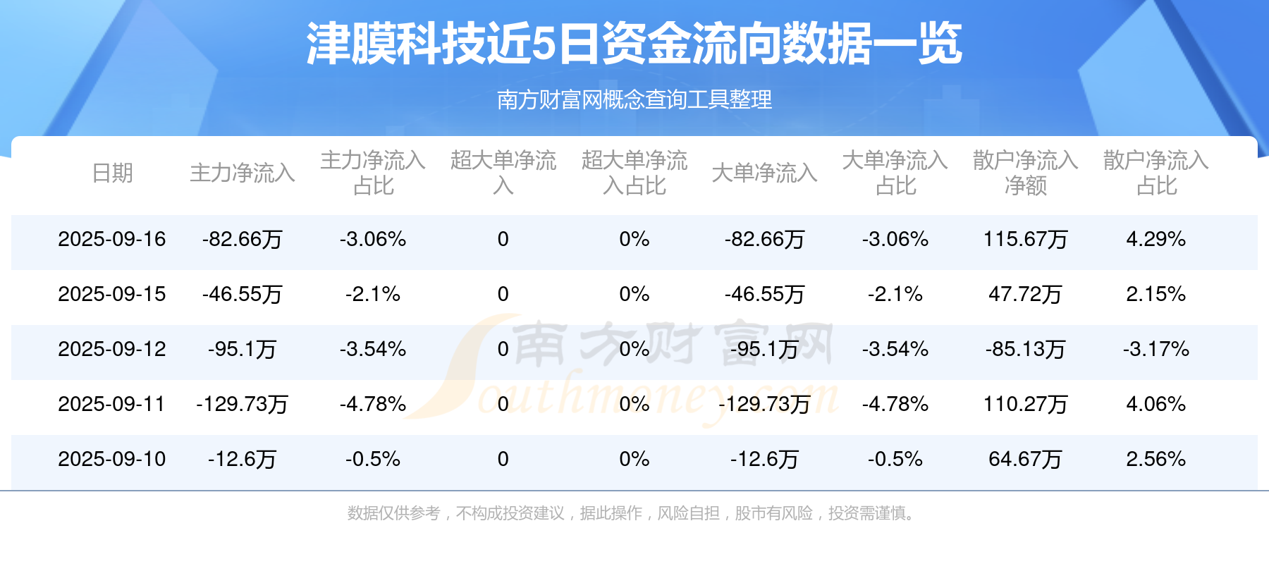 近5日資金流向一覽見下表: