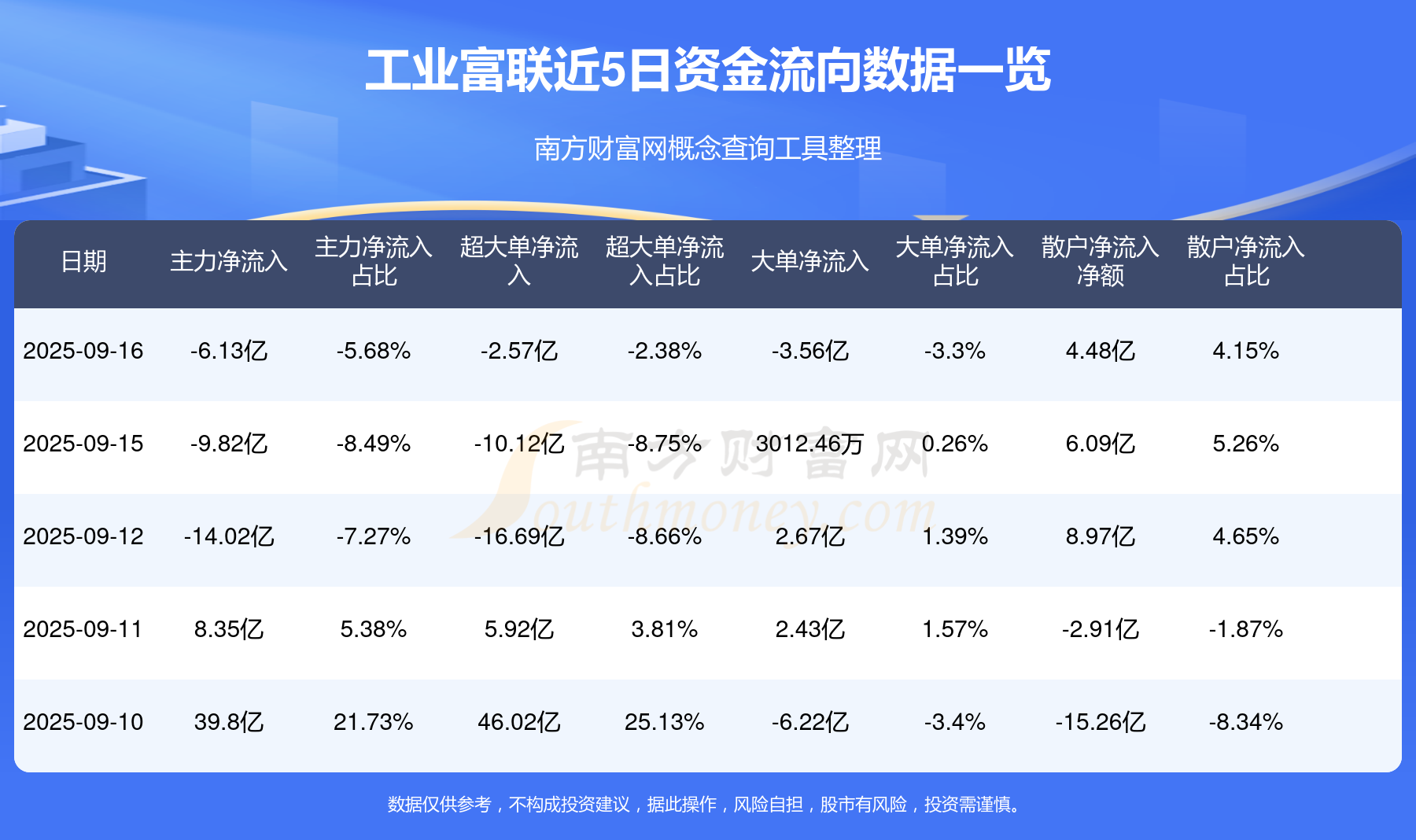 資金流向數(shù)據(jù)方面,9月16日主力資金凈流流出6.13億元,超大單資金凈流出2.57億元,大單資金凈流出3.56億元,散戶資金凈流入4.48億元。