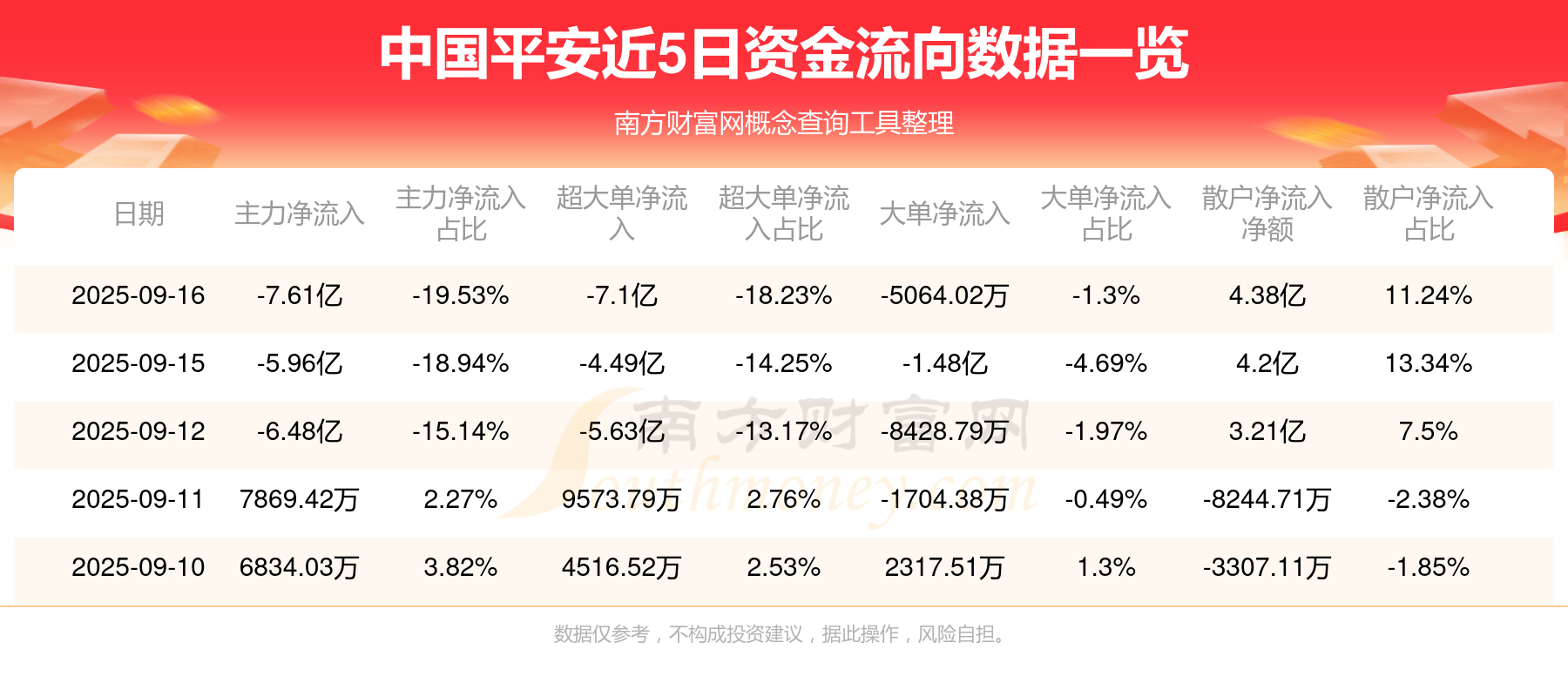 9月16日消息,中國平安9月16日主力資金凈流出7.61億元,超大單資金凈流出7.1億元,大單資金凈流出5064.02萬元,散戶資金凈流入4.38億元。