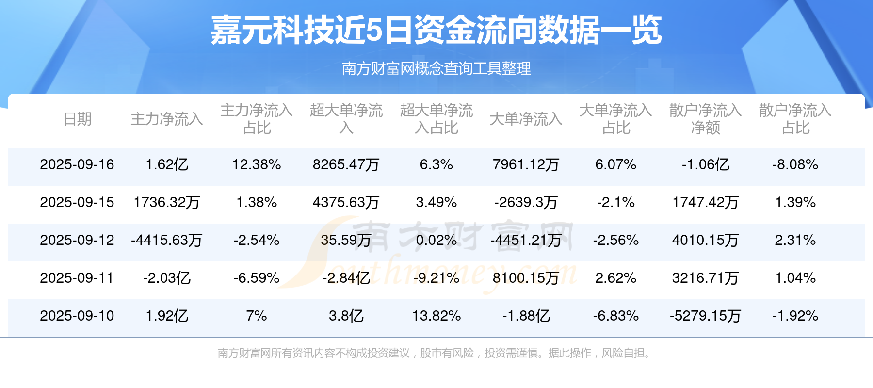 近5日資金流向一覽見下表: