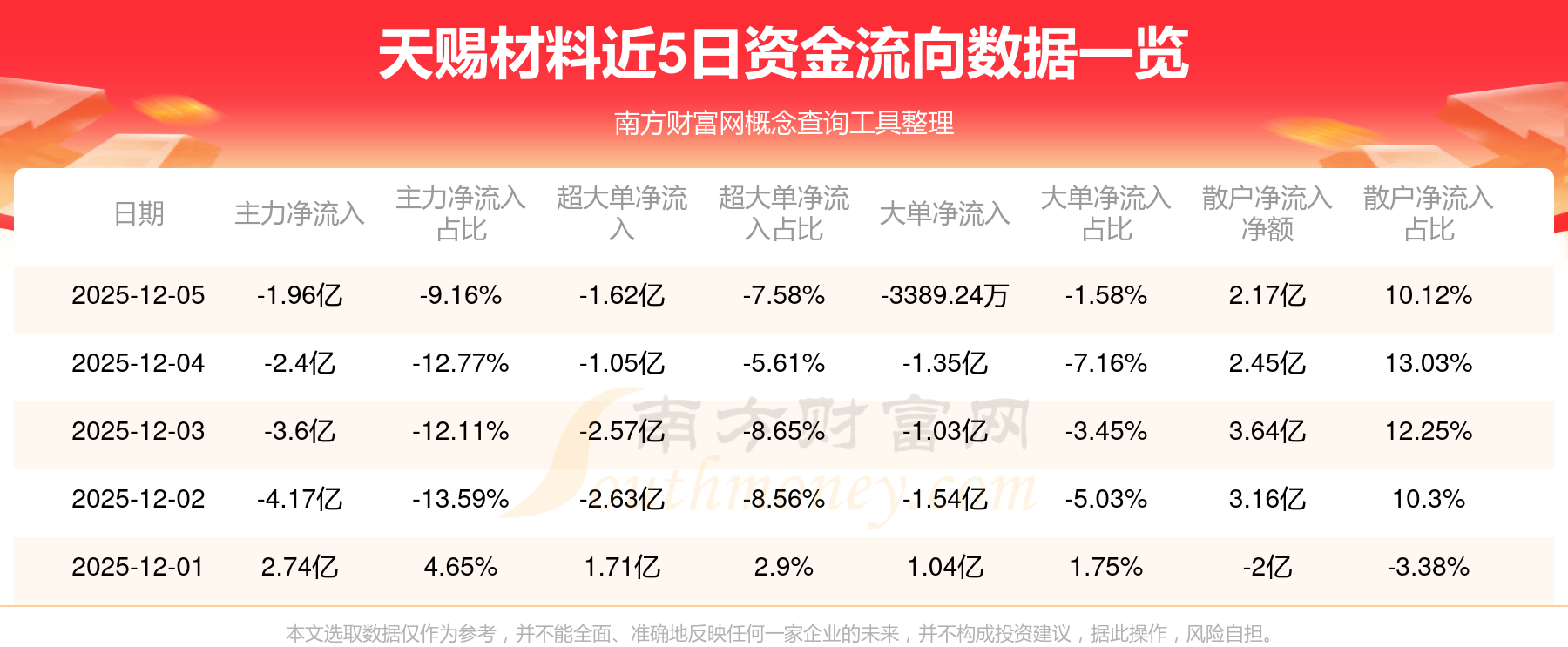 資金流向數(shù)據(jù)方面,12月5日主力資金凈流流出1.96億元,超大單資金凈流出1.62億元,大單資金凈流出3389.24萬元,散戶資金凈流入2.17億元。