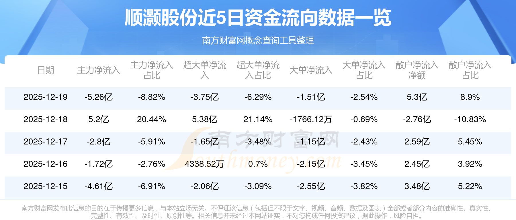 12月19日消息,順灝股份12月19日主力資金凈流出5.26億元,超大單資金凈流出3.75億元,大單資金凈流出1.51億元,散戶資金凈流入5.3億元。